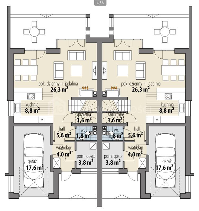 - wiatrołap połączony z pomieszczeniem technicznym oraz garażem,