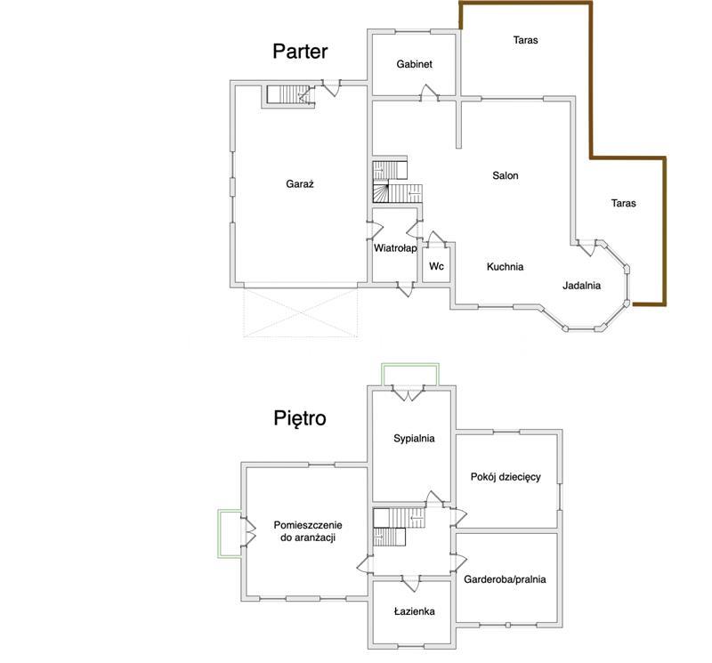 - jadalni z wyjściem na drugi, zadaszony taras,
