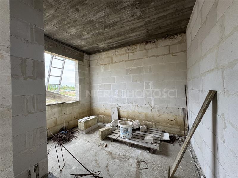 Stan deweloperski obejmować będzie: rozprowadzenie instalacji wod. kan., grzewczej (przewidziane ogrzewanie kominkowe w salonie – pellet – bez pieca/kominka), okna PCV 3 szybowe, elewacja zakończona tynkiem strukturalnym, wewnątrz ściany – tynk wapienny. Dach konstrukcji drewnianej pokryty dachówką.