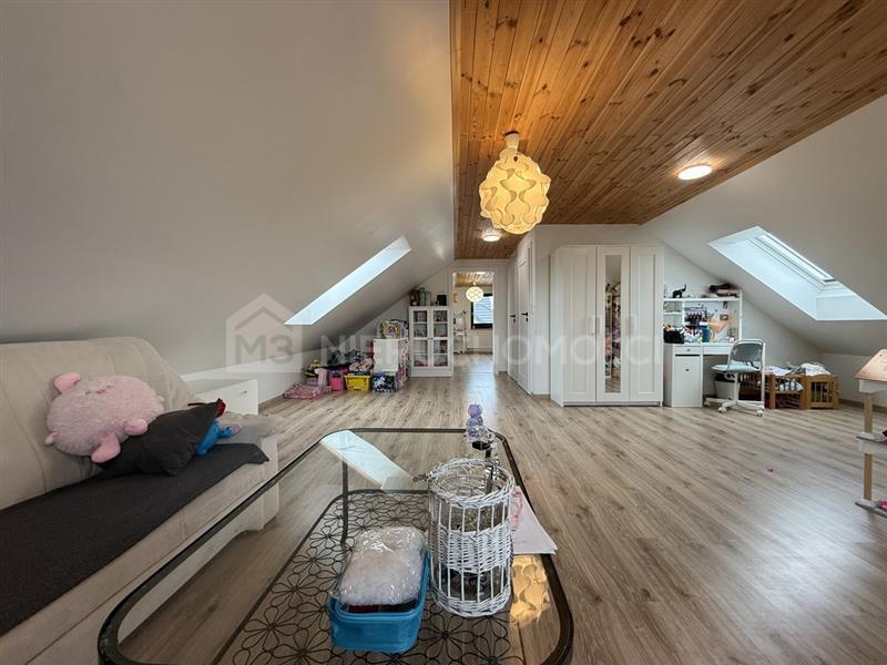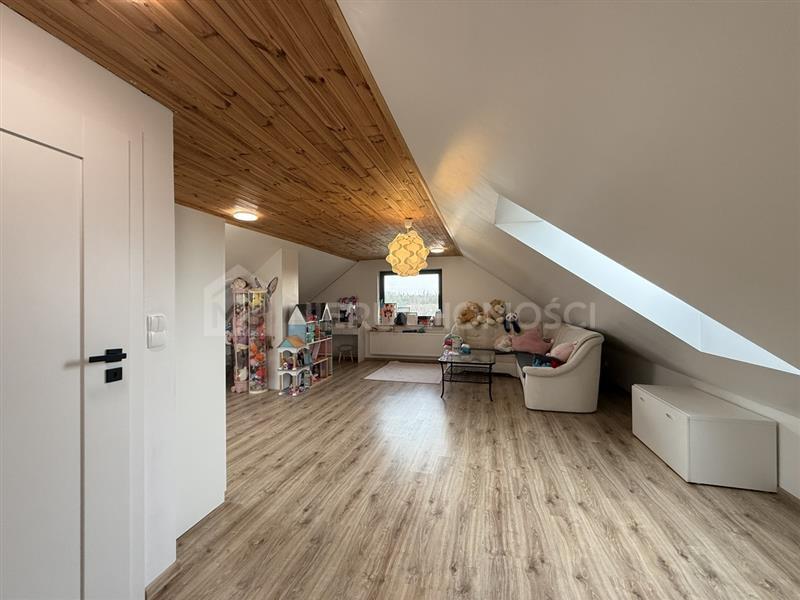 Powierzchnia ta stanowi funkcjonalne uzupełnienie domu i może pełnić funkcję pokoi dla dzieci, strefy pracy lub przestrzeni rekreacyjnej.
