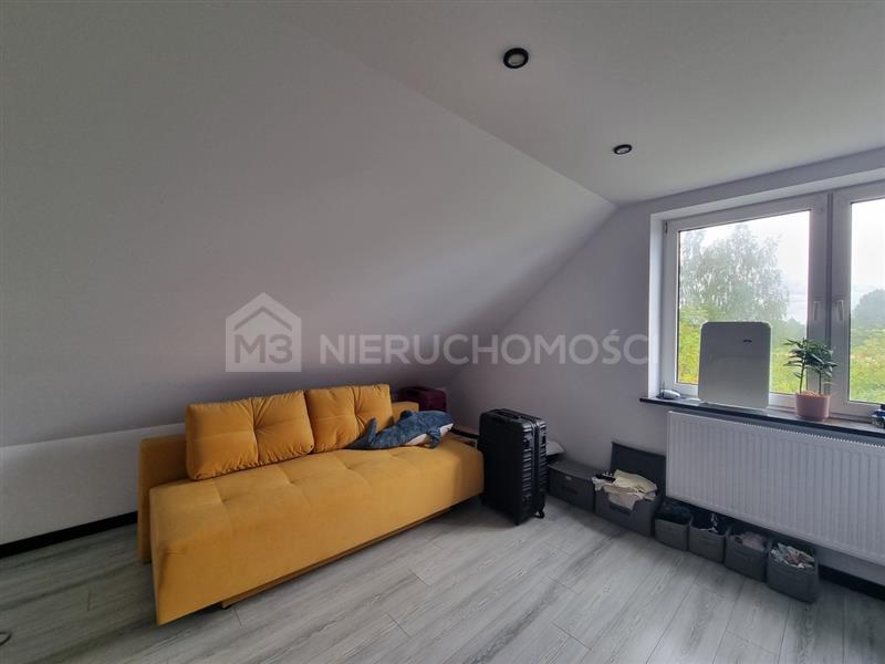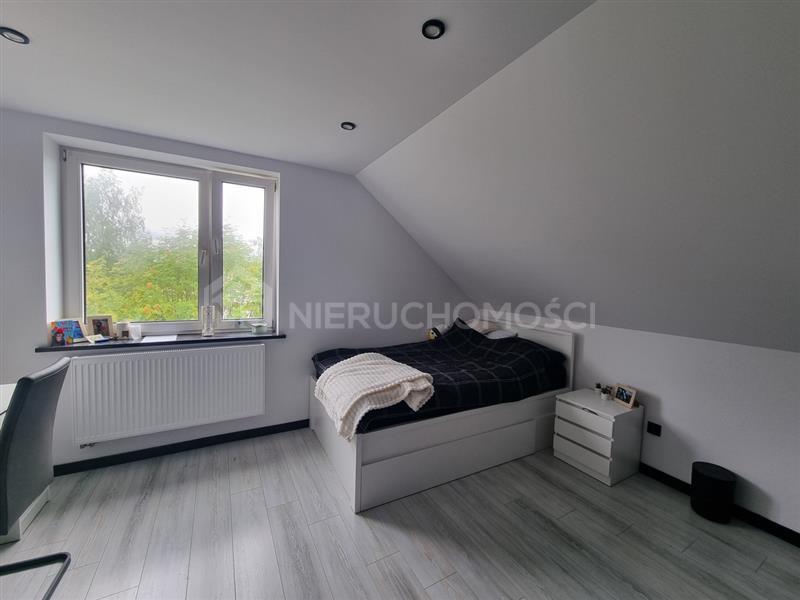 Budynek mieszkalny jednorodzinny oddany do użytku w 1996 roku, o powierzchni zabudowy ok. 110 m2 oraz powierzchni całkowitej 236,18 m2. Budynek wolnostojący, całkowicie podpiwniczony (wysokie stropy), parterowy z poddaszem użytkowym składający się na poziomie parteru z salonu, sypialni z garderobą, kuchni, łazienki, przedpokoju z klatką schodową prowadzącą na poddasze gdzie znajdują się 4 sypialnie, łazienka oraz przedpokój natomiast na poziomie piwnicy znajduje się garaż, kotłownia, kuchnia letnia oraz pomieszczenia gospodarcze. Budynek ogrzewany piecem na pellet. Budynek po remoncie.