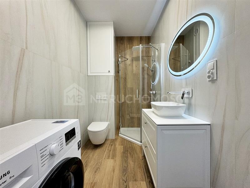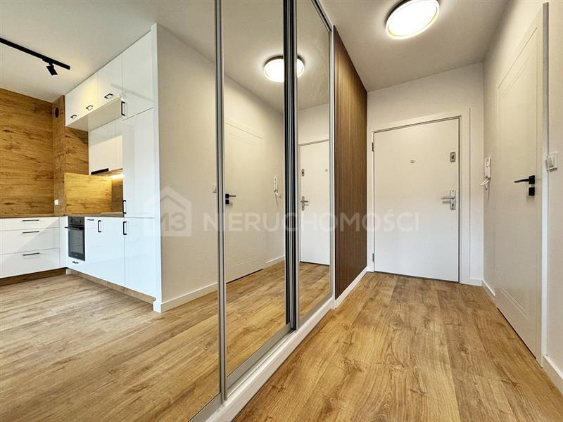 W cenie najmu kompleksowo wyposażony lokal: salon i sypialnia z umeblowaniem, kuchnia wraz z praktyczną zabudową i podstawowymi sprzętami AGD, łazienka z pełną armaturą i pralką oraz przedpokój z pojemną szafą typu komandor.