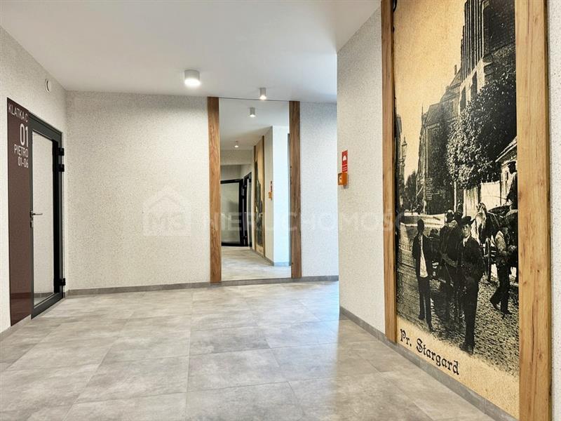 Mieszkanie składa się z pokoju dziennego z aneksem kuchennym, oddzielnej sypialni, łazienki i przedpokoju. Wystawa okienna zachodnia, z widokiem na ulicę. Do lokalu przynależy też komórka lokatorska o powierzchni 5,96 m2 oraz miejsce postojowe w hali garażowej pod budynkiem.
