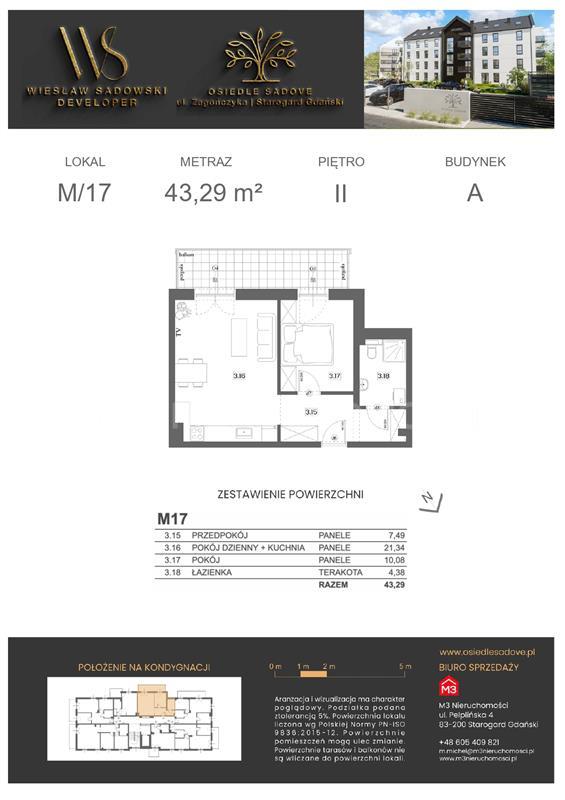 Przedmiotem oferty jest słoneczne mieszkanie 2-pokojowe o projektowanej pow. 43,29 m2 zlokalizowane na II piętrze budynku.