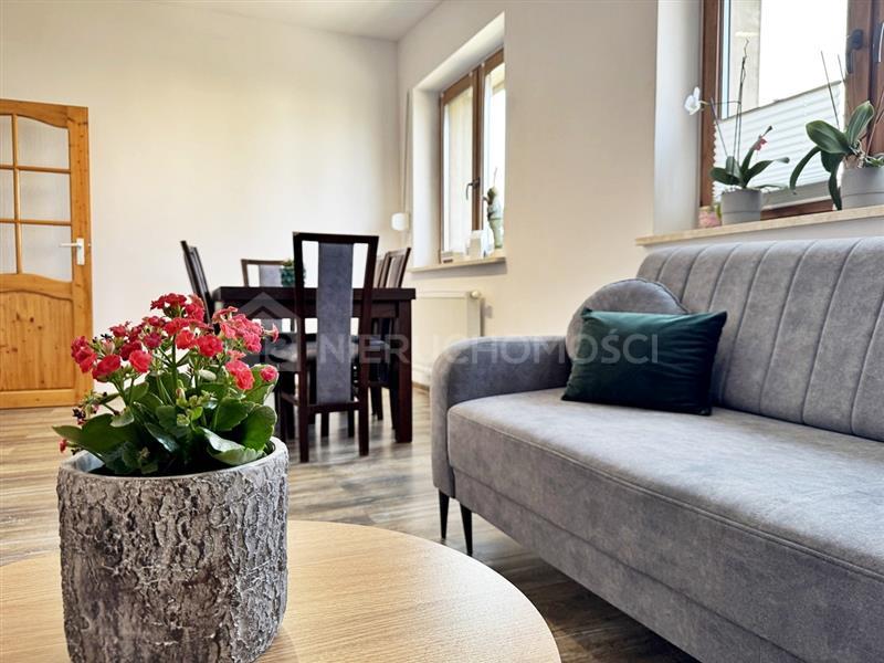 Stan pomieszczeń bardzo dobry, gotowy do zamieszkania. Mieszkanie sukcesywnie remontowane, dodatkowo wymienione okna na 3-szybowe PCV, a także ocieplona ściana zewnętrzna budynku. Ogrzewanie lokalu piecem na opał stały znajdującym się w piwnicy.