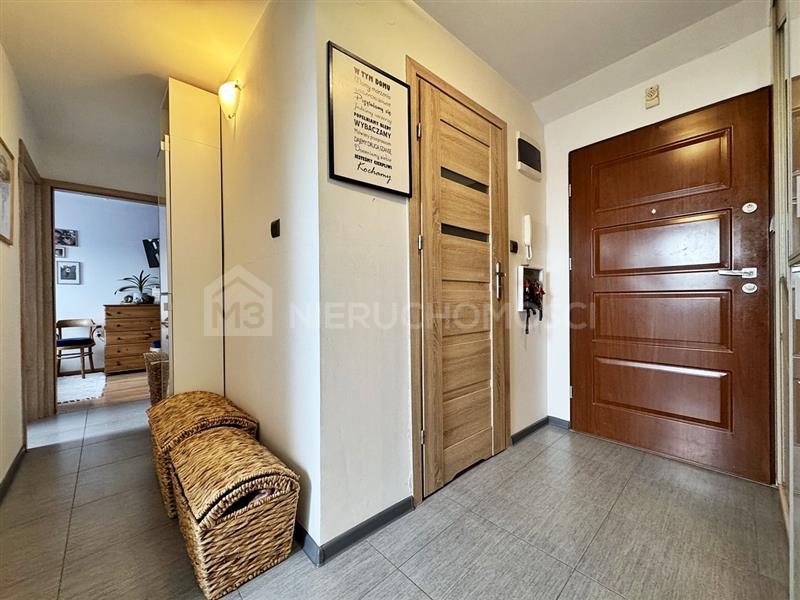 Nieruchomość składa się z przestronnego salonu, dwóch oddzielnych sypialni, kuchni, łazienki oraz przedpokoju. Do mieszkania przynależy też sporych rozmiarów komórka lokatorska znajdująca się na korytarzu bezpośrednio przy mieszkaniu.