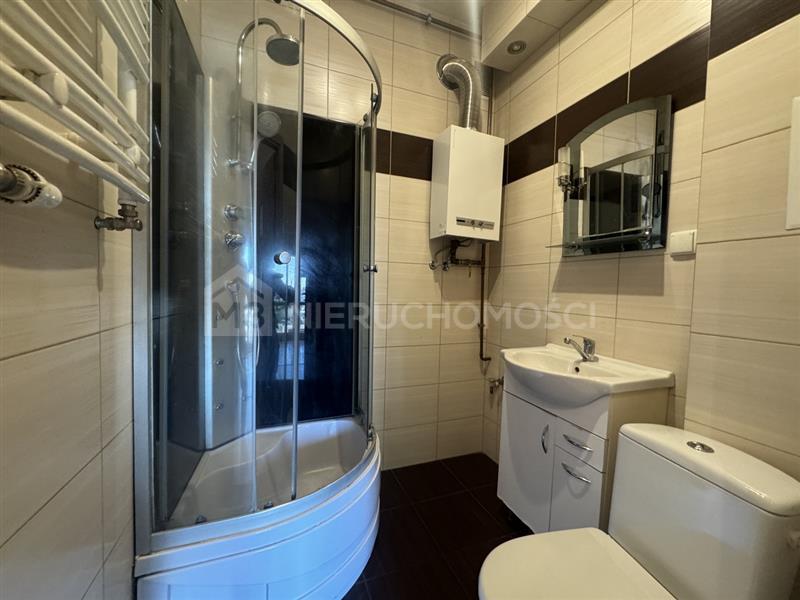 Mieszkanie jest przestronne i gotowe do zamieszkania. Wnętrza utrzymane w dobrym standardzie – na podłogach panele, funkcjonalna kuchnia wyposażona w niezbędne sprzęty. Łazienka z kabiną prysznicową i piecykiem gazowym do podgrzewania wody.