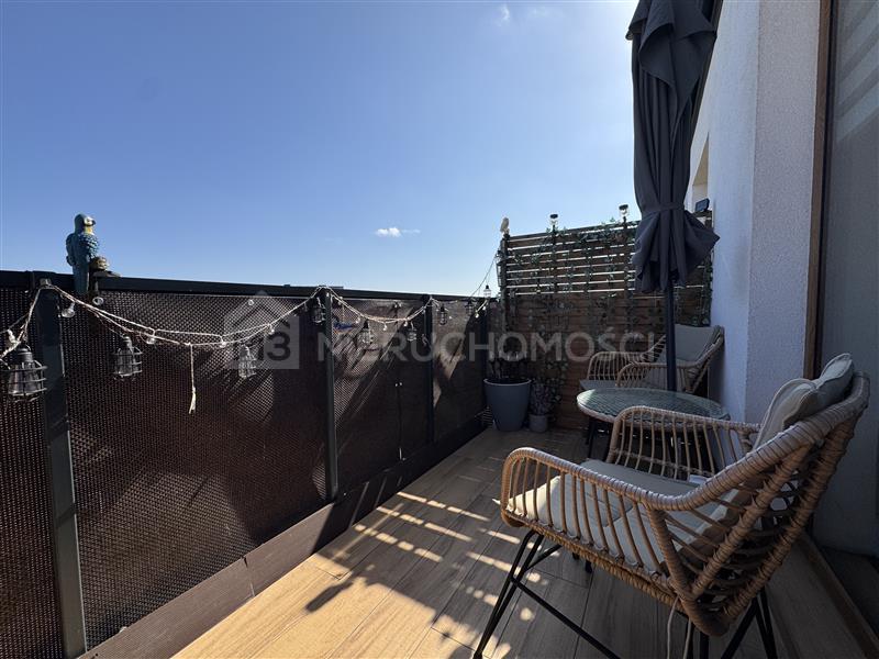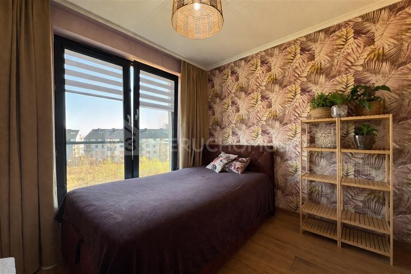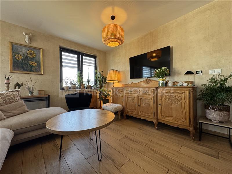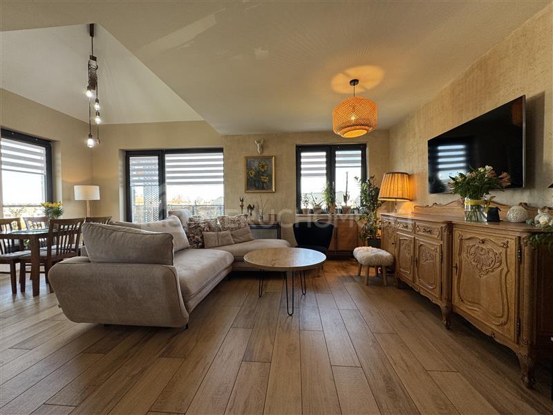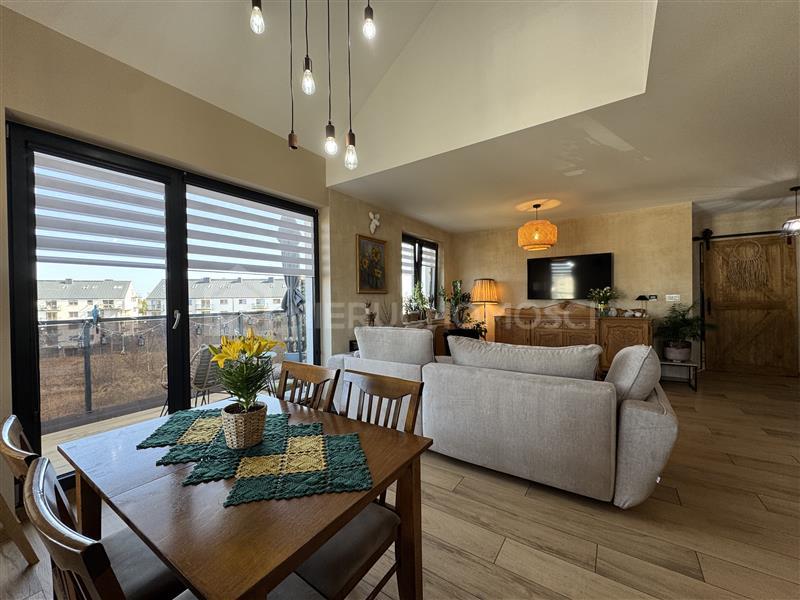 - Przestronny salon połączony z aneksem kuchennym oraz wyjściem na balkon,