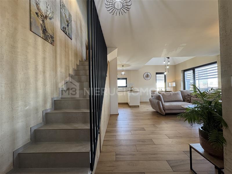 - Ogrzewanie i ciepła woda z sieci ciepłowniczej, na I poziomie rozprowadzono ogrzewanie podłogowe, na antresoli grzejniki,